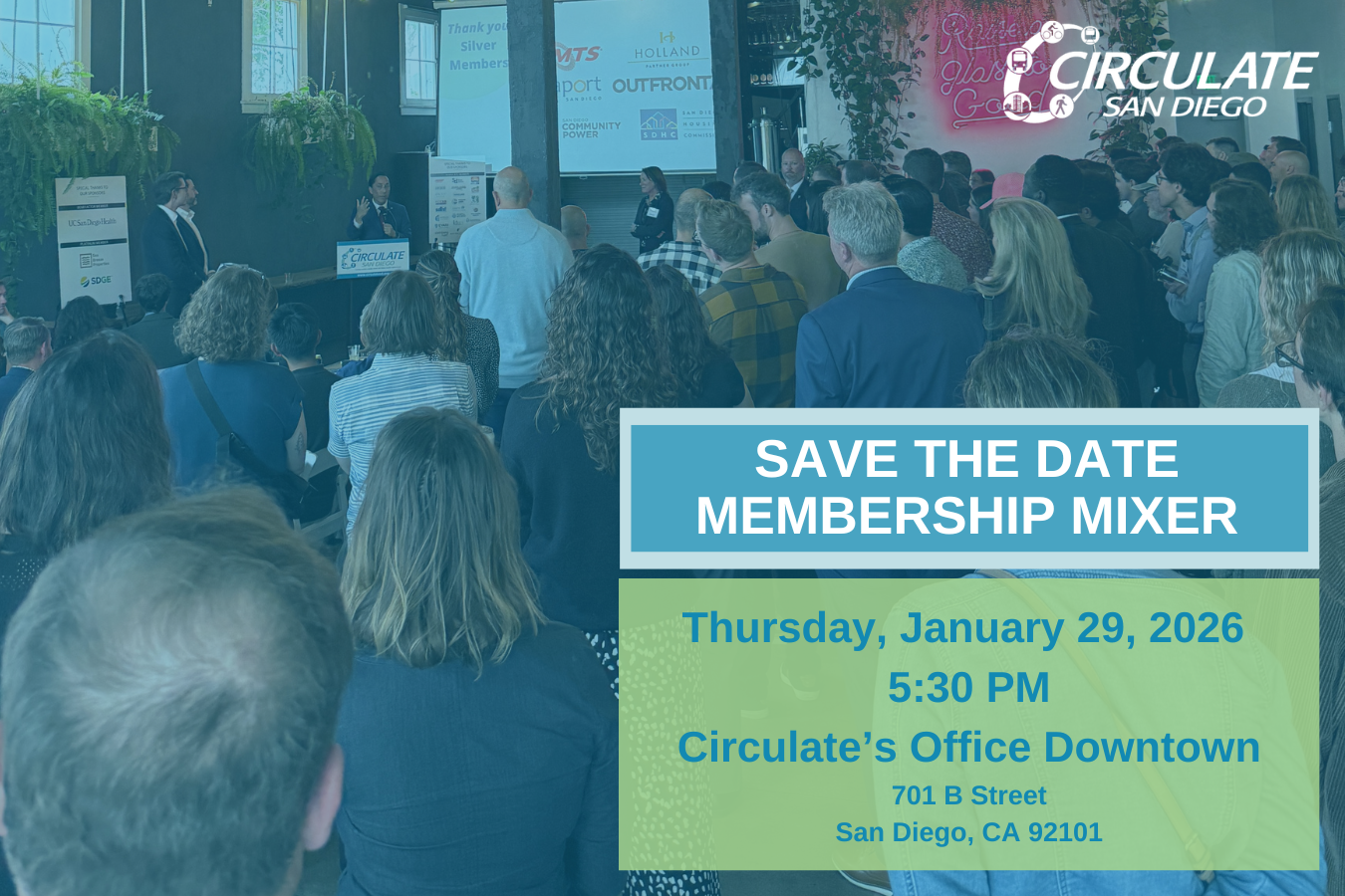Where: Circulate’s Office at B-Side Lounge (701 B Street, San Diego, CA 92101)