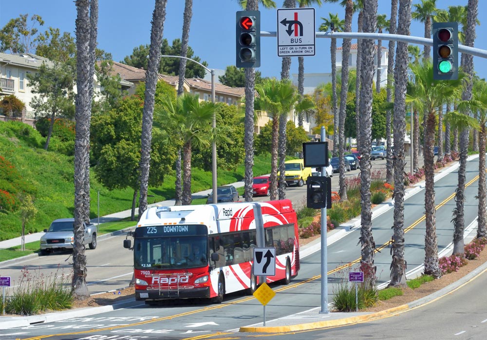MTS's Rapid service is a high-frequency, limited stop bus service that gets people where they need to go quickly and easily. This study particularly focused on Rapid Route 225 which travels between the Otay Mesa Transit Center and Downtown San Diego. For a portion of its route, Rapid Route 225 had the ability to travel on the shoulder of I-15 during busy commuter hours. The pilot has now concluded which means Rapid Route 225 can no longer drive on the shoulder.